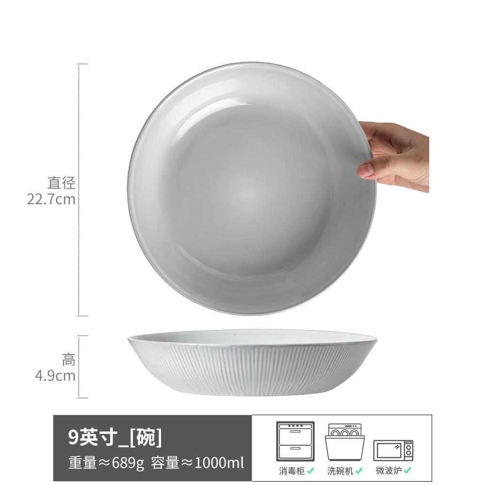 Simple Style Household Ceramic Large Bowl Gray And White Fruit Salad Bowl Vegetable Bowl Texture Open Dessert Bowl Tableware