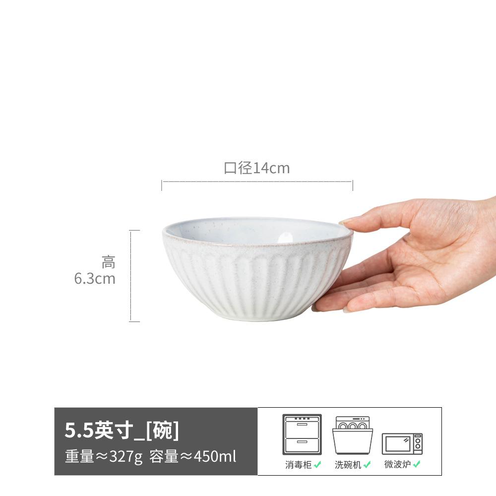 Minimalist Style Salad Bowl Embossed Ceramic Bowl Household Noodle Bowl Vegetable Bowl Tableware Round Bowl Big Rice Bowl Fruit Bowl