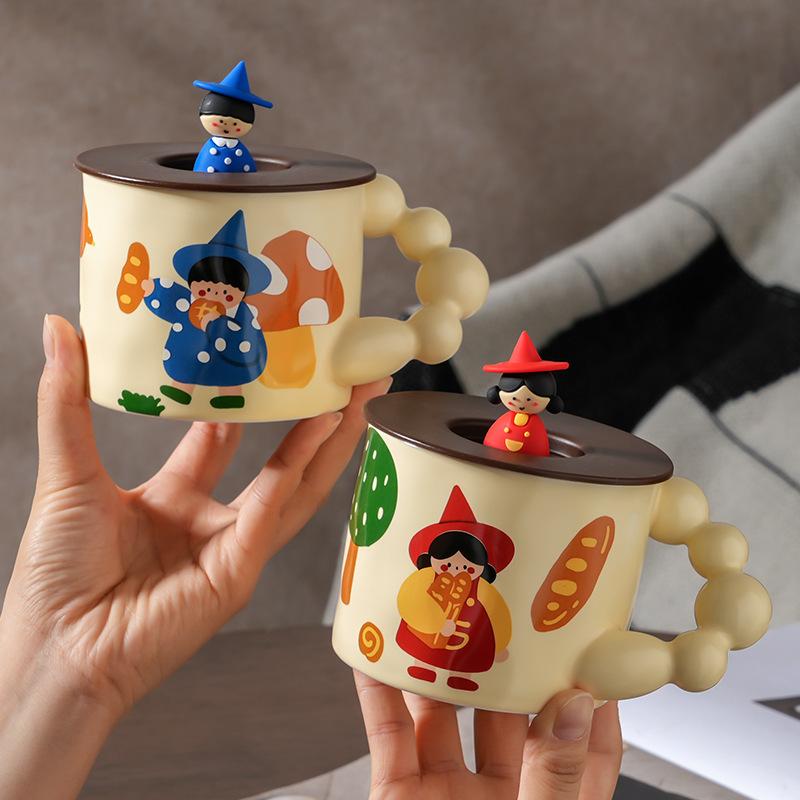 Vintage Magic Girl Boy Couple With Lid Mug Water Cup Office High Value Ceramic Breakfast Cup Drinking Cup
