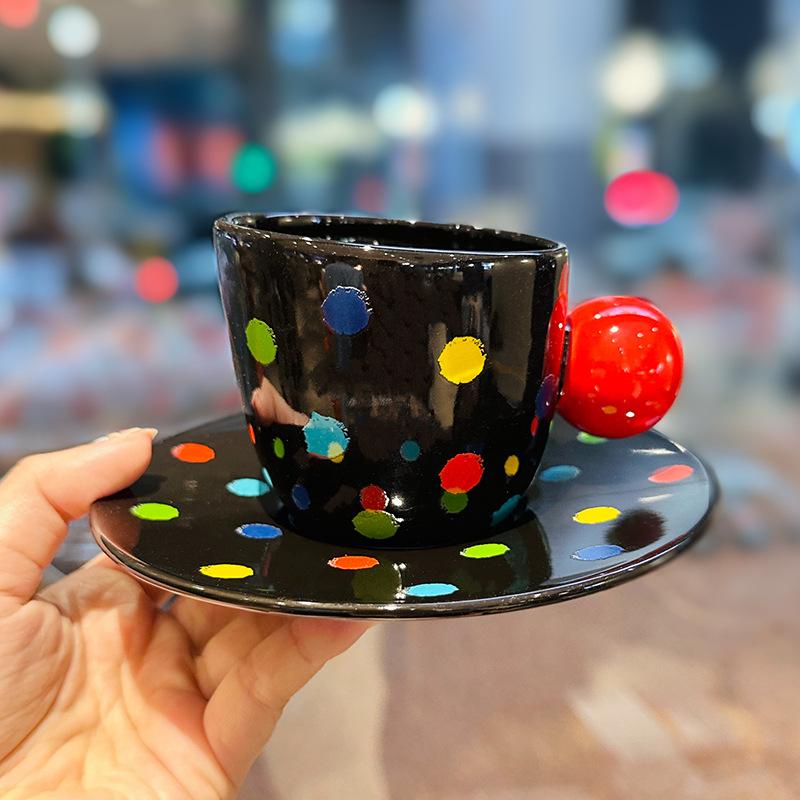 Creative Retro Style Polka Dot Ceramic Coffee Cup Saucer Personalized Gift For Friends Afternoon Tea Cup Set Souvenir