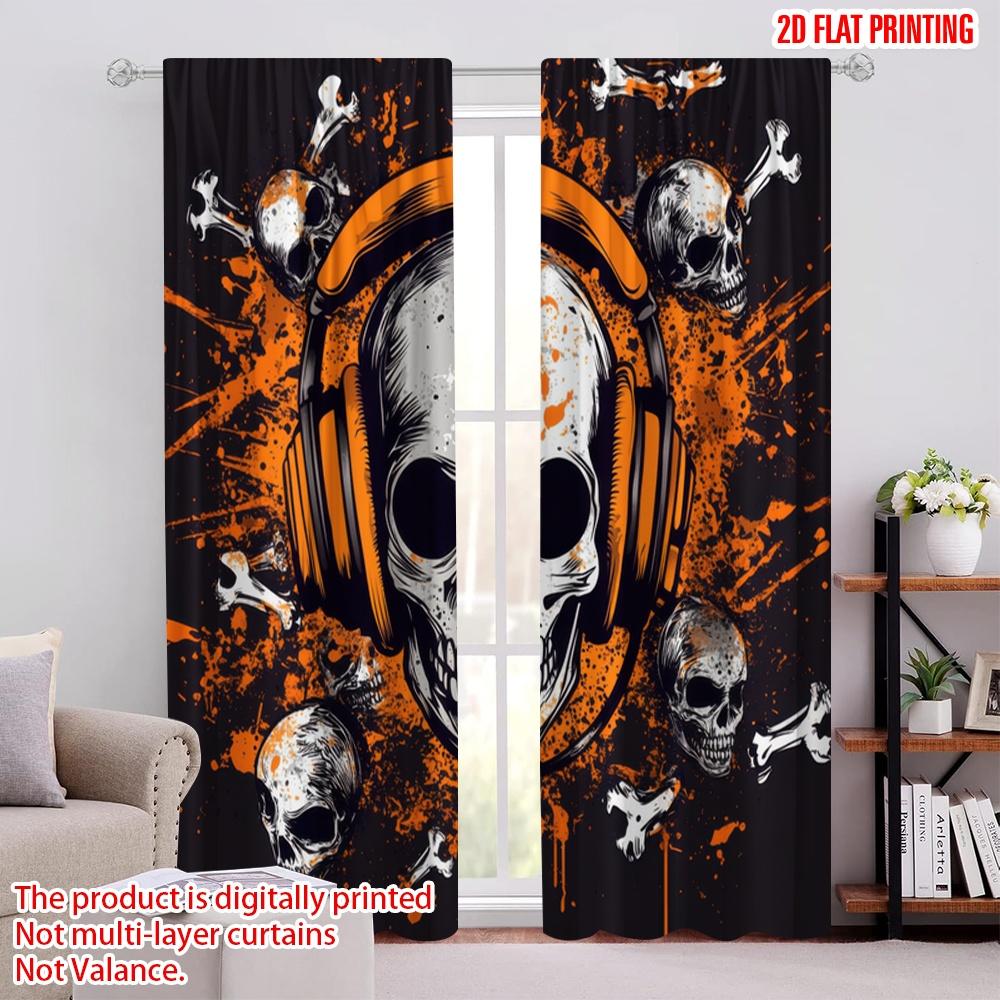 2 Stück, 2D-Flachdruck Vorhang Beliebte Totenköpfe Beats Polyester Einfache Installation (ohne Stange) Urlaubsideal für Wohnzimmer, Schlafzimmer,
