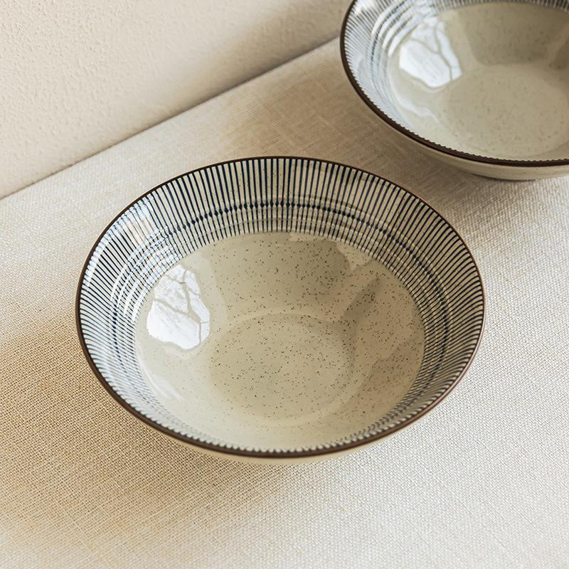 Creative Line Ceramic Large Bowl Household Soup Bowl Open Bowl Tableware Bowl Style Vegetable Bowl Restaurant Ramen Bowl