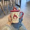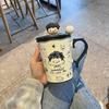 Cute Graffiti Ceramic Cup Couple Mug With Lid Spoon Household Drinking Cup Niche Design Breakfast Cup