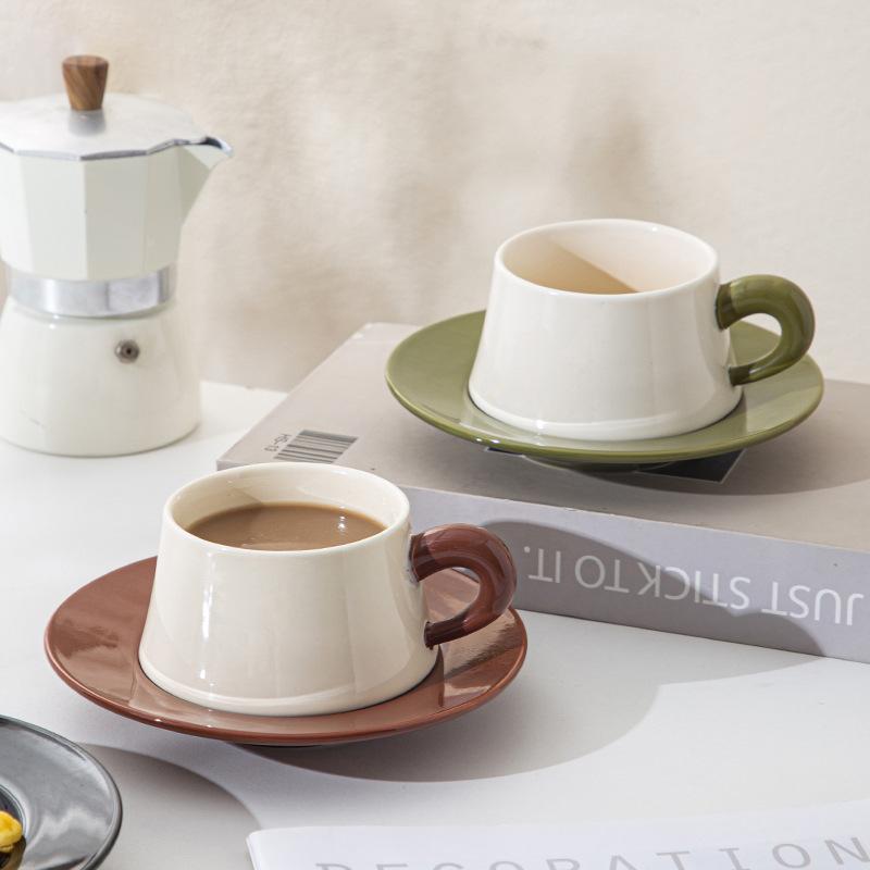 Creative Contrast Color Macron Ceramic Coffee Cup Saucer Set Hotel Restaurant Household Coffee Cup Tea Cup Breakfast Cup Saucer