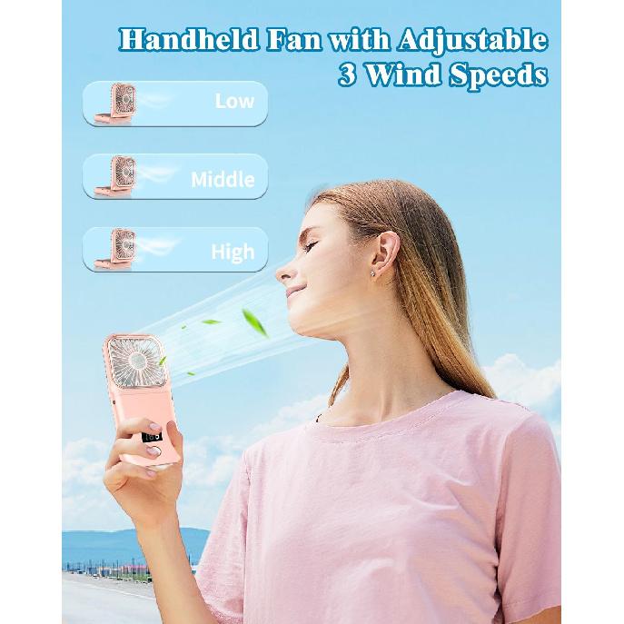 【Strong 3 Speeds Wind】: Portable handheld fan with 3 speed airflow adjustment allows you to choose the appropriate fan speed according to your needs and the environmental conditions.In hot summer,you can adjust mini hand fan to a high speed for powerful cooling, while in cooler environments, you can opt for a low speed to enjoy a gentle breeze, saving electricity and extending battery life, improving fan efficiency.A personalized portable fan provides you with a more comfortable user experience