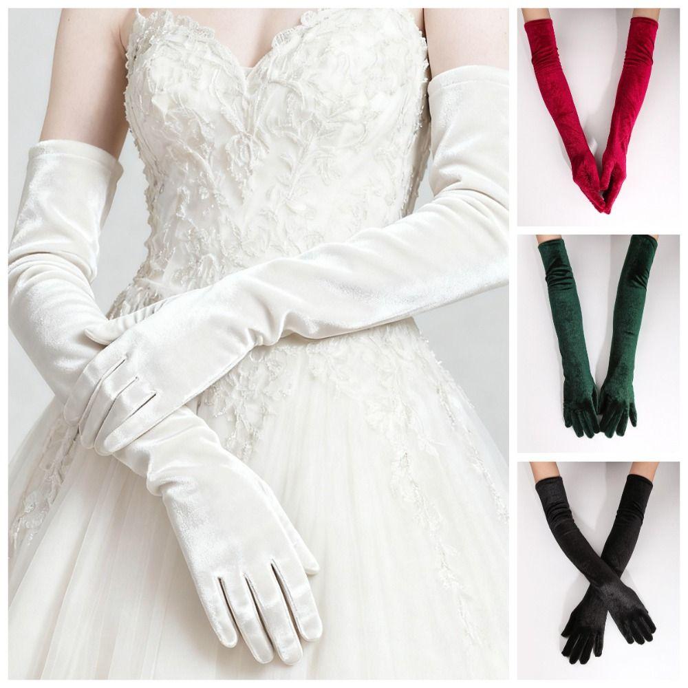 53cm Women's Fluffy Gloves Elegant Bride's Long Mittens Velvet Long Gloves Dress-Up Accessories