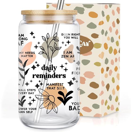 With the positive quotes, this glass tumbler becomes a personal cheerleader, reminding you to embrace joy, gratitude, and self care