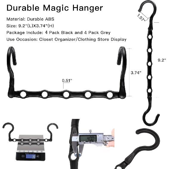 【Closet Organization】: Our closet organizer is different from open slots of other metal or plastic closet storage clothes hangers, each magic clothes organizer hanger has 5 enclosed slots, enclosed slots can effectively prevent hangers from falling off when hanging vertically, no longer worry about hangers falling all over the place, this magic closet organizer works well with all hanger types such as wood, plastic, metal and more