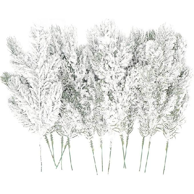 14 Pcs 10Inch Artificial Flocking Pine Picks Snow Forest Artificial Pine Needles Branches Christmas Fake Greenery Tree Branches DIY Leaves for