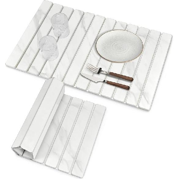 Large Stone Dish Drying Mat for Kitchen Counter, 24"(L)×16"(W) Fast Dry Super Absorbent Collapsible Dish Drying Mats, Eco-Friendly Diatomaceous