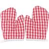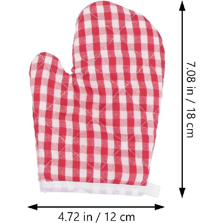 Oven Mitts for Kids, Red Grid Kitchen Gloves Heat Resistant for Cooking Baking Microwave