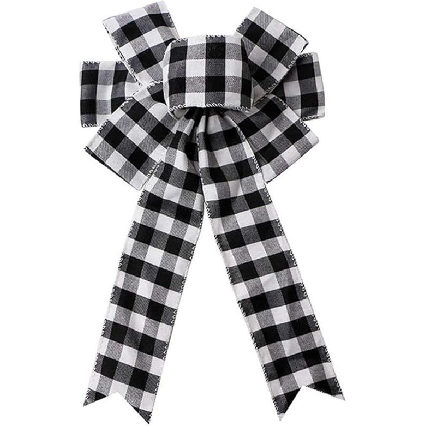 Black White Buffalo Plaid Bow Christmas Wreath for Tree Topper & Front Door Decoration
