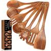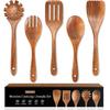 5 PCS Wooden Spoons for Cooking Natural Teak Kitchen Utensils Set Smooth Non-Stick Surface Cooking Utensils Set Soft Comfort-Grip Wooden Spatula Set