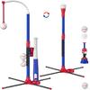 3-in-1 Baseball Set for Kids 3-5 - Tee Ball Stand, Hanging Tee, Ball Launcher and 6 Softballs - Adjustable Height, Indoor/Outdoor Sport Gifts for