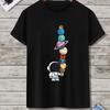 Summer Cotton Cartoon Astronaut Planet Print Loose Large Casual Round Neck Short Sleeve T-shirt