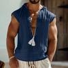 Sommer Freizeit Herren Lockere Kapuzenweste Tägliche Freizeit Atmungsaktives Leinen Tanktop Herren Vintage Ärmellos Tiefes V-Ausschnitt T-Shirts