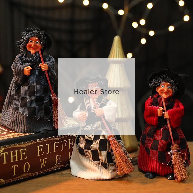 1Pc Halloween Broomstick Figurine Hanging Doll DIY Decor Pendant Party Haunted House Props Ornament Garden Bar Decor