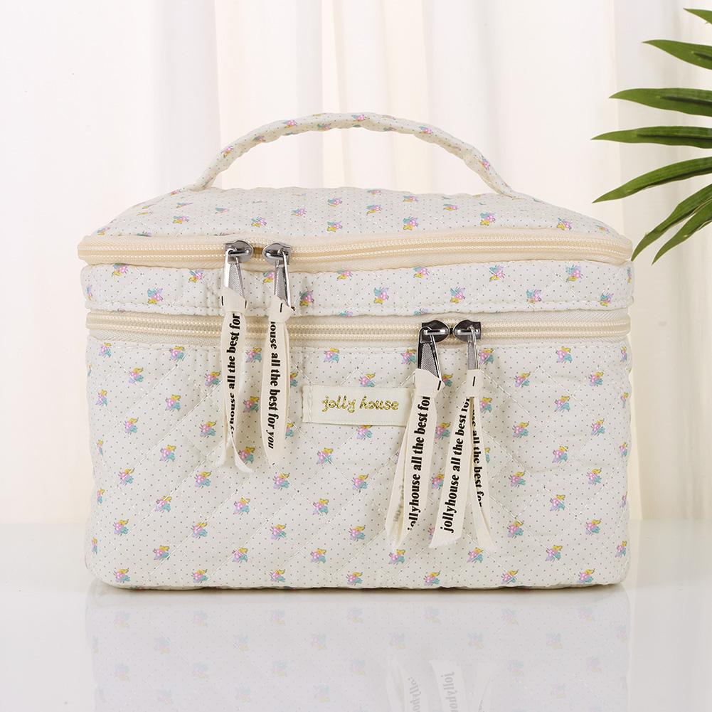 Double Layer Toiletry Bag with Compartments Cotton Makeup Cosmetic Bag Zipper Closure Floral for Toiletries Accessories Brushes