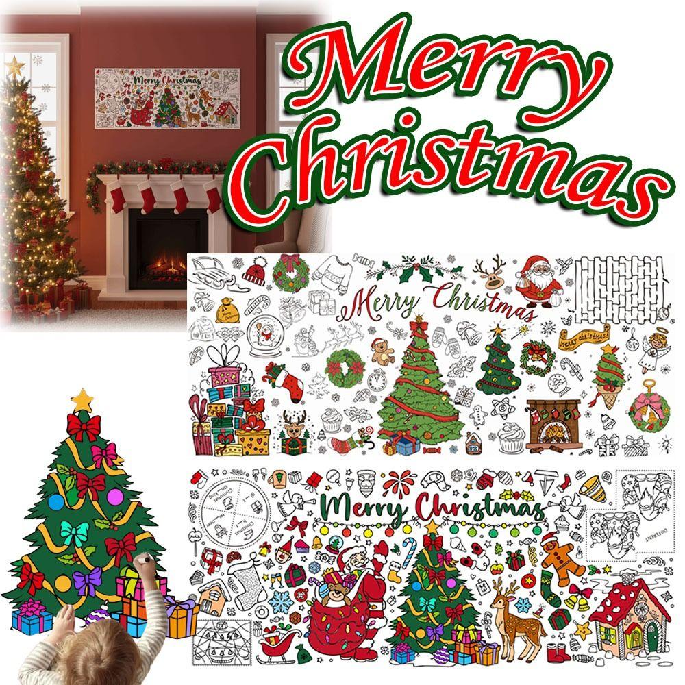 Cute Large Christmas Coloring Poster for Kids Drawing Paper DIY Doodle Tablecloth Xmas Coloring Banner Kids Christmas Gifts