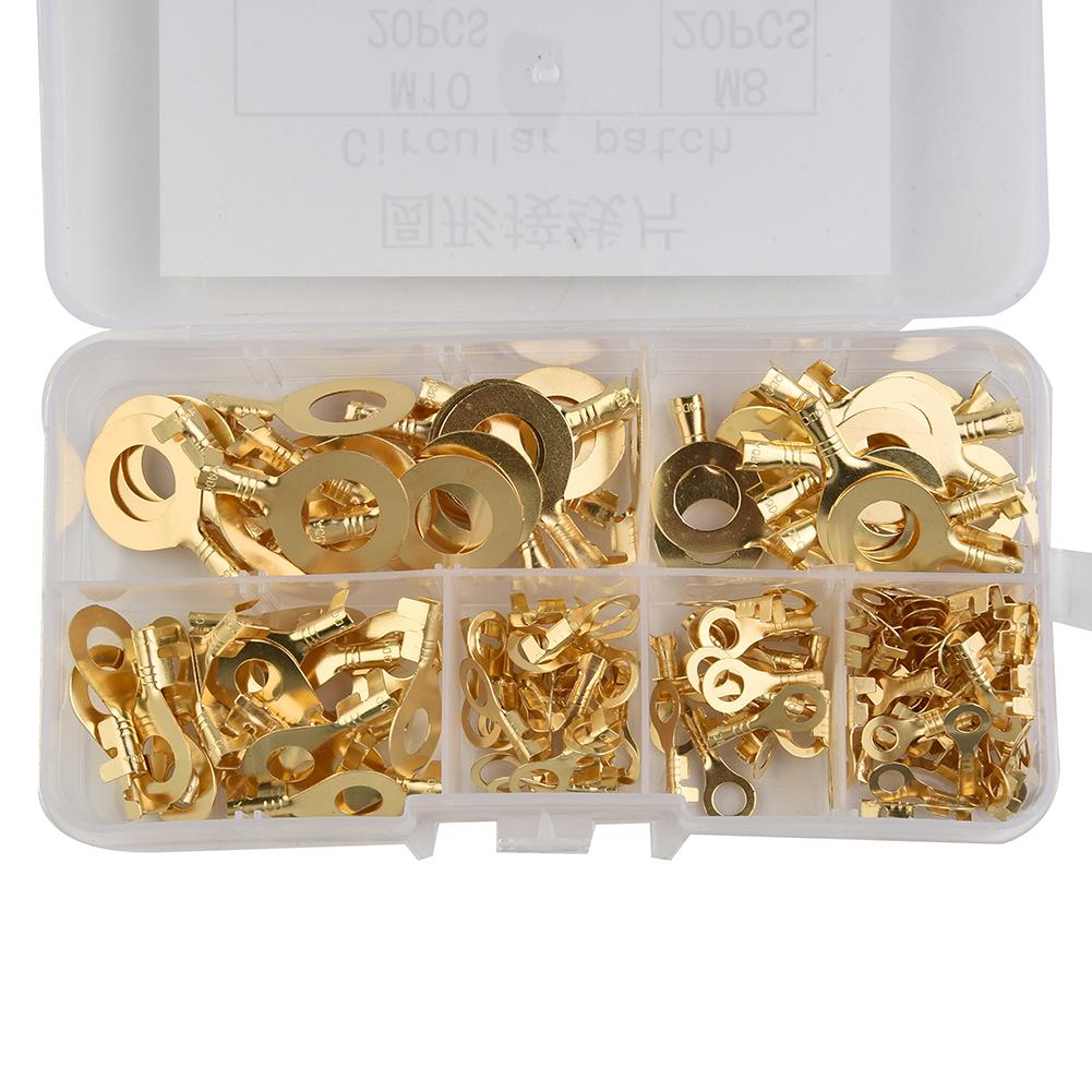 150pcs Brass Cable Lugs Assorted Sizes Copper Ring Connectors for M3 M5 M6 M8 M10 with Clear Storage Container