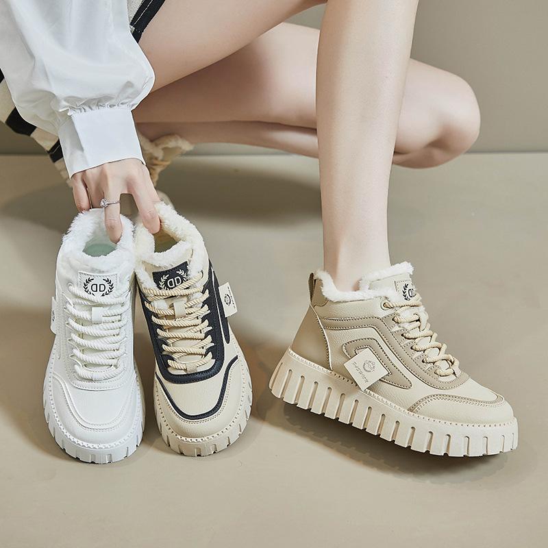 Damen Winter Pelzgefütterte High Top Sneaker Outdoor Slip-on Fleecegefütterte Schneestiefel Warme Lässige Stiefeletten Kunstleder Kurze Stiefeletten