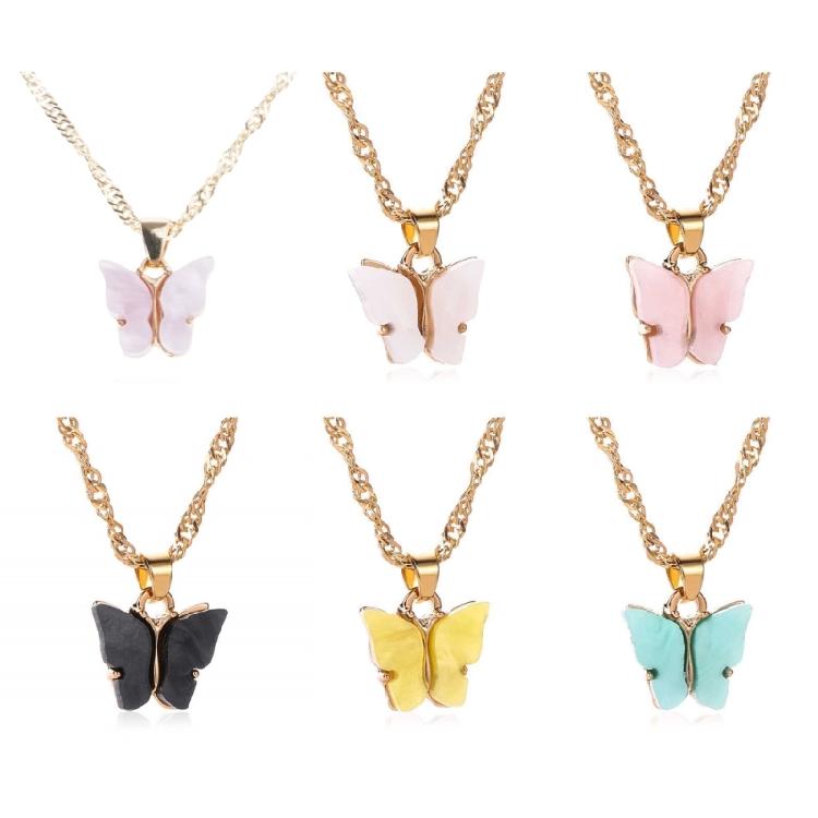 Vibranting Color Butterfly Pendant Necklace With Adjustable Chain Portable Sturdy Acrylic Jewelry Accessory for Girls