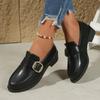 43 Plus Size Metal Buckle Small Leather Shoes Women's 2025 Autumn New Thick Heel Low Top