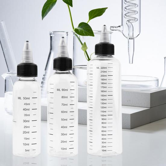 Klares und Messbares Design: Diese Dosierflasche besteht aus transparentem PET-Kunststoff mit gut lesbaren Graduierungsmarkierungen.. Benutzer können mühelos Flüssigkeitsstände verfolgen und Inhalte genau messen, wodurch Rätselraten entfällt.. Seine Klarheit gewährleistet die schnelle Identifizierung von Flüssigkeiten und macht ihn ideal für präzise Dosieraufgaben in Küchen, Laboren oder Bastelräumen.