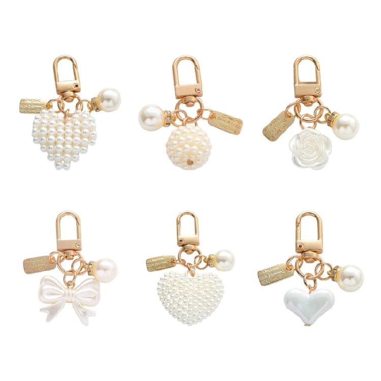 Elegant Heart Keychain with Pearls Accent Trendy Pearls And Alloy Rose Heart Keychain Adornment For Fashion Lovers