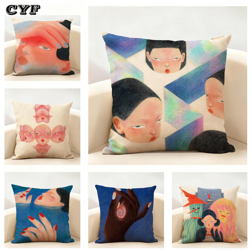 Tear Nevus Cushion Cover Household Decoration Linen Sofa Cushion Cover: Skin-Friendly & Breathable with Invisible Zipper
