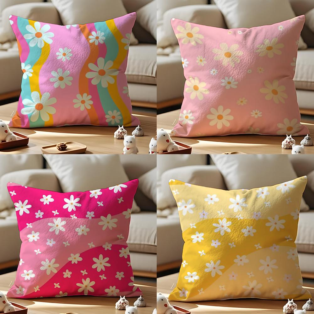 Romantisches Gänseblümchen-Frühlingskissenbezugmuster Bedruckter Kissenbezug für Wohnzimmersofa Kissenbezug & Schlafzimmerdeko