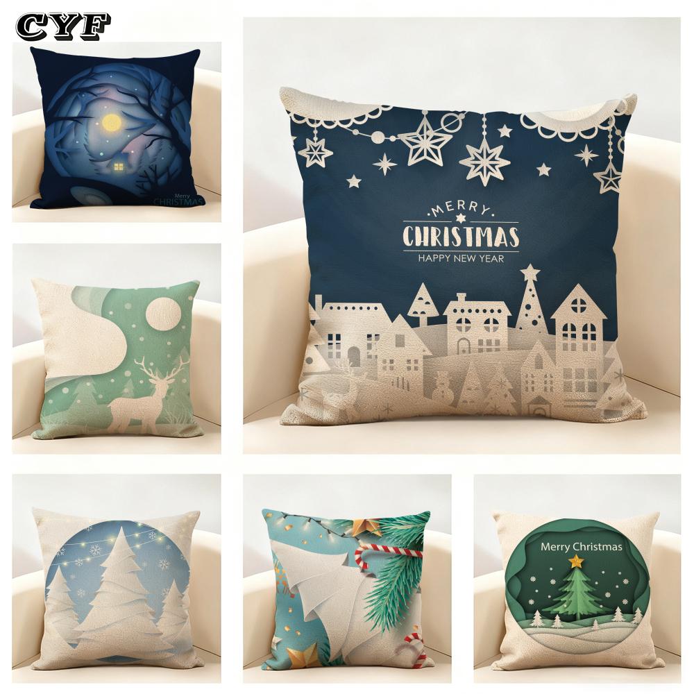 Blue And Green Snowflake Christmas Cushion Cover Household Decoration Linen Sofa Cushion Cover: Skin-Friendly & Breathable With