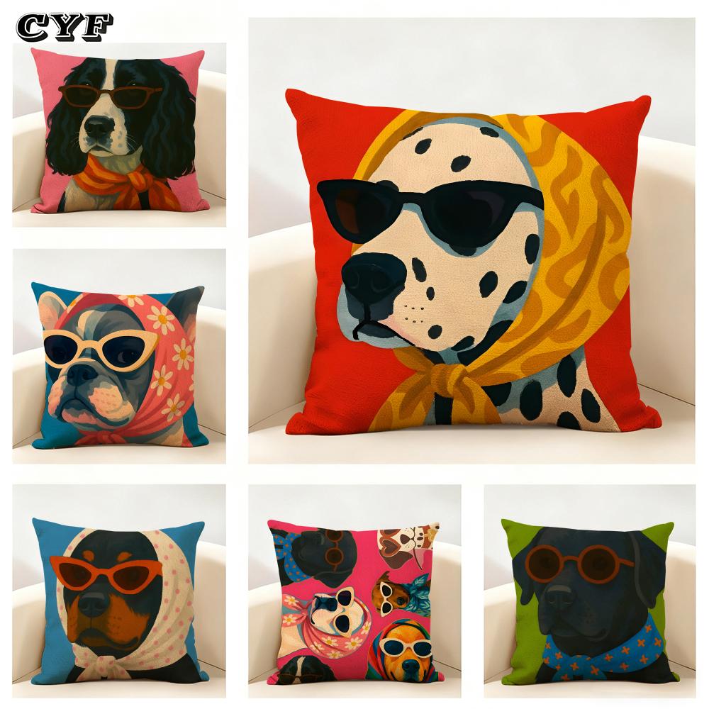 Animals Wearing Bandanas Cushion Cover Household Decoration Linen Sofa Cushion Cover: Skin-Friendly & Breathable With Invisible