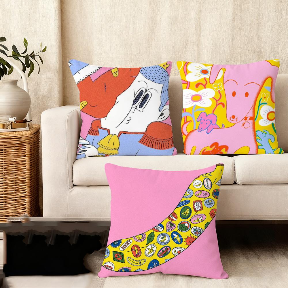 Cushion Cover Silky Short Plush Home Sofa Cushion Cover - Invisible Zipper Home Decoration Cute illustration art