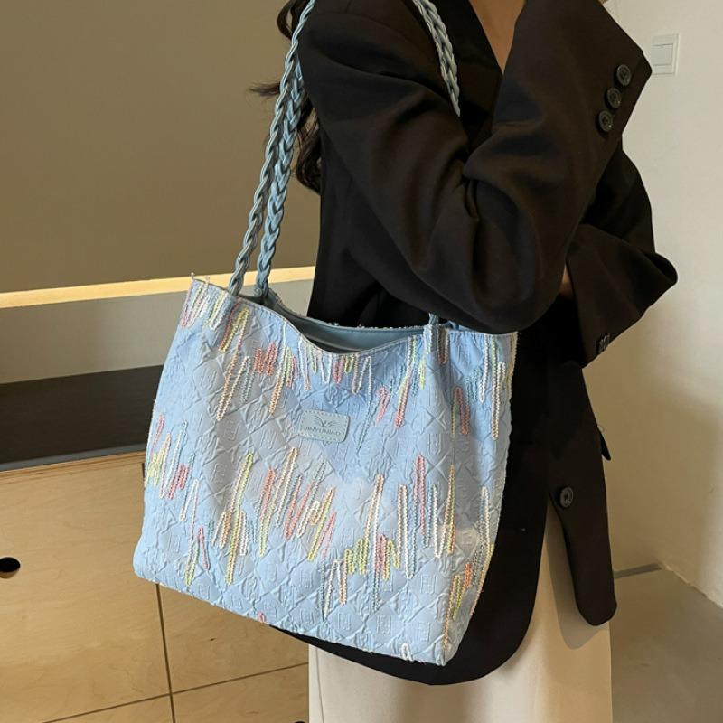 Student class canvas bag women's new summer shoulder armpit bag striped large-capacity commuter tote bag