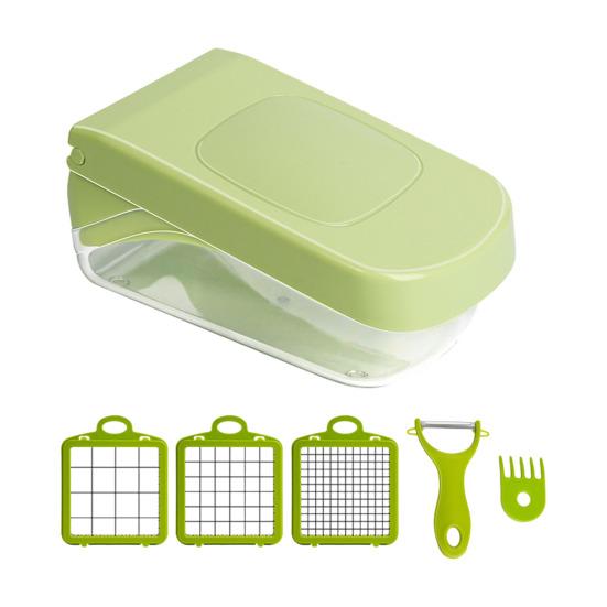 Gemüsehacker mit 8 Klingen Julienne-Schneider Würfelschneider Reibe Schäler Edelstahl Zwiebelhacker Unverzichtbares Küchenwerkzeug für Kartoffeln Karotten Zwiebeln