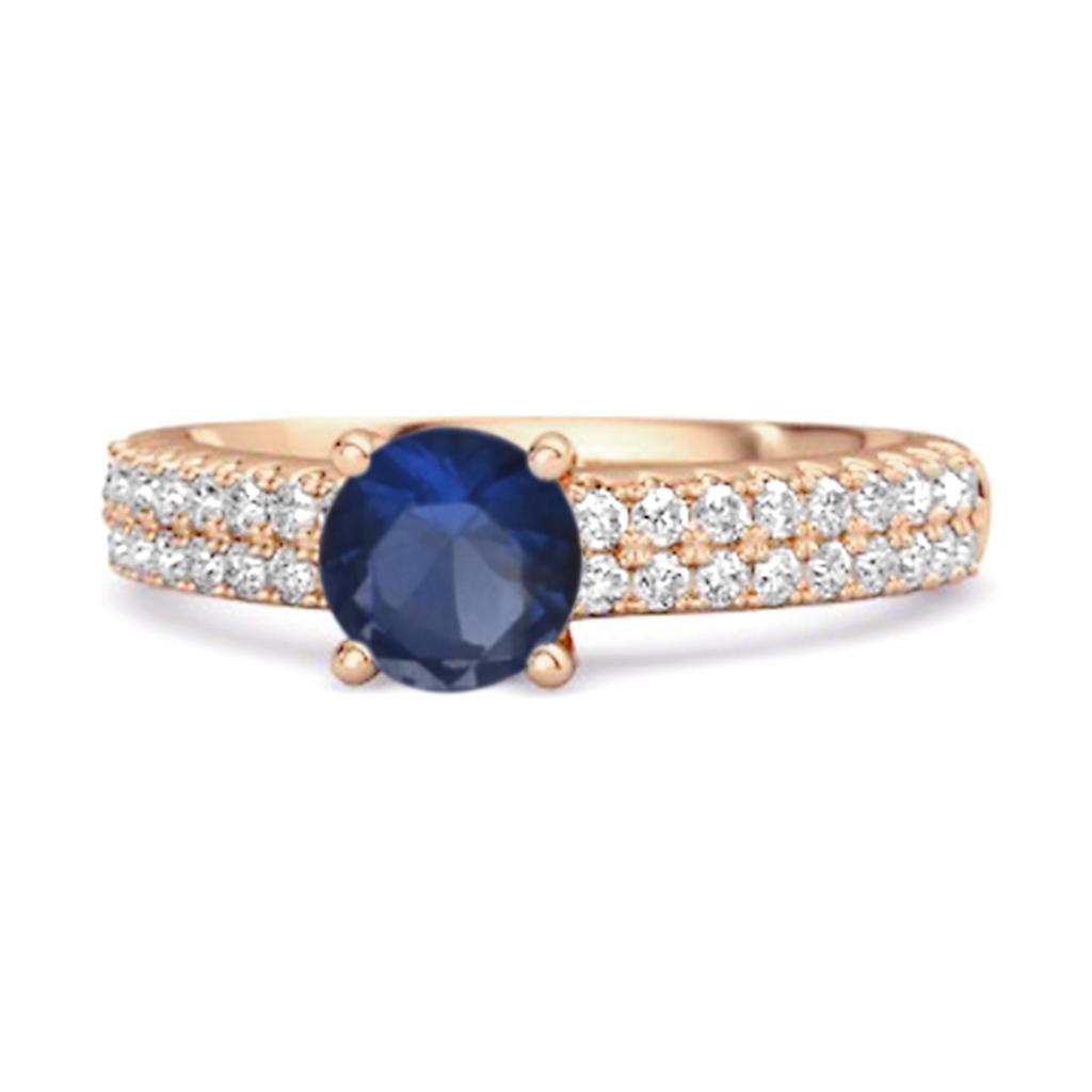 Sterling silver ring with 0.78 Ct round blue sapphire and pave band. A timeless engagement or anniversary design.