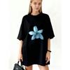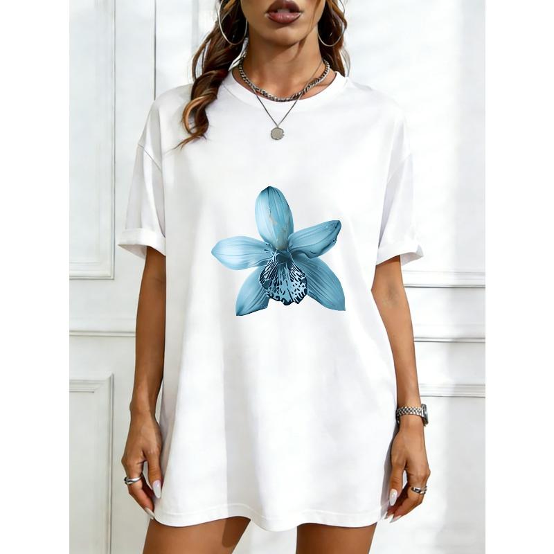Übergroßes T-Shirt-Kleid Schwarz Blau Orchideen-Blumendruck Lässiger Streetwear-Stil Für Damen Sommer-Outfit