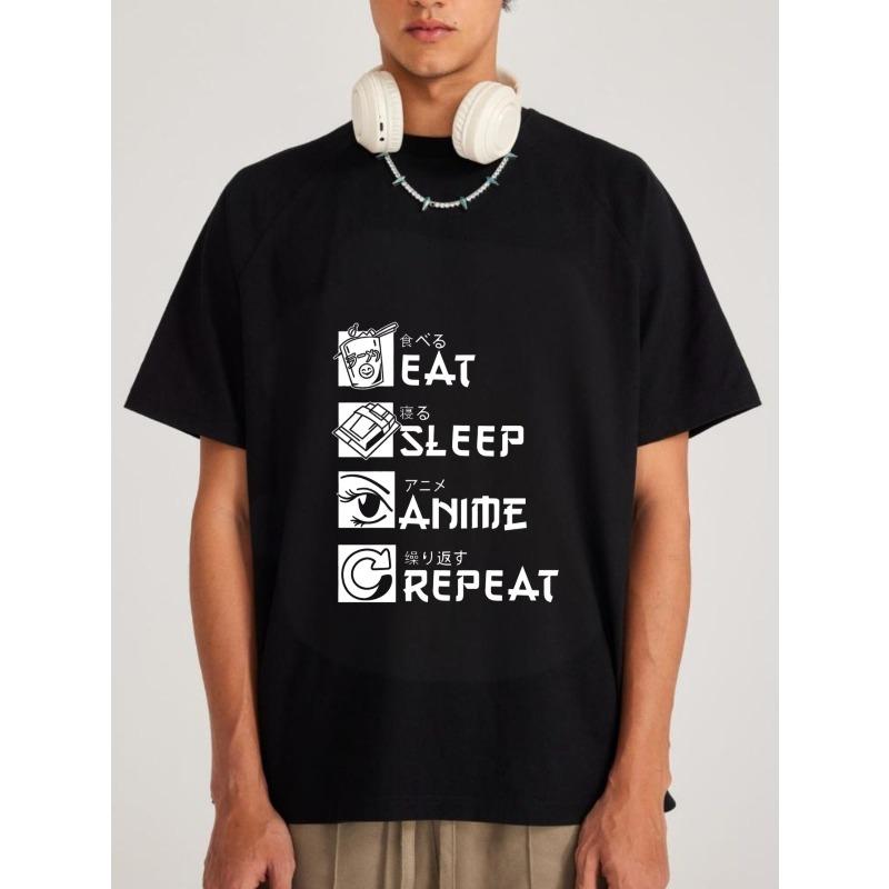 Weißes T-Shirt Eat Sleep Anime Repeat Grafikdruck für Freizeitkleidung