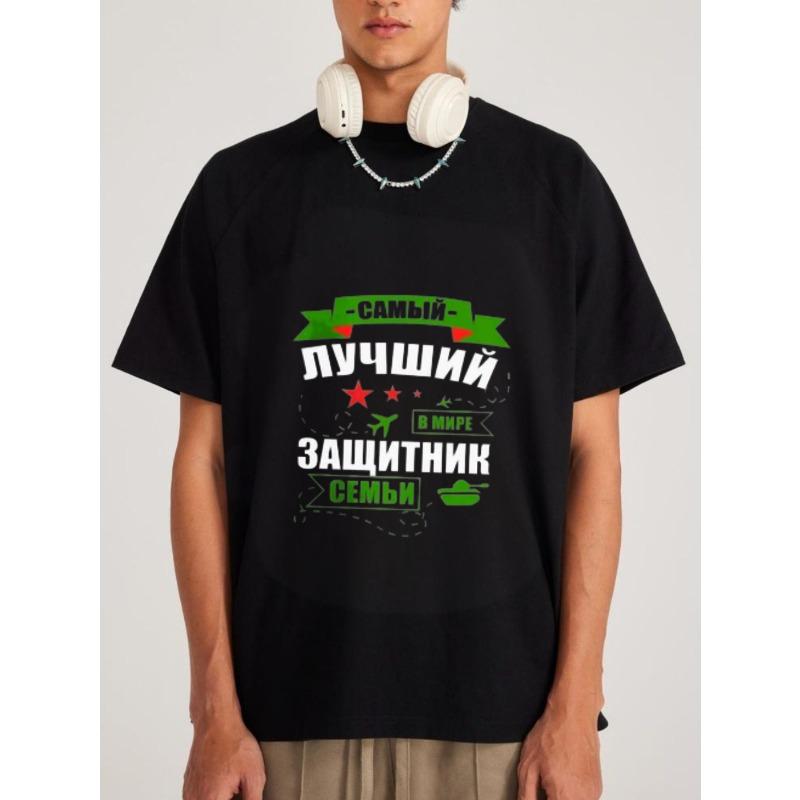 White T Shirt with Russian Text and Green Ribbon Design Best Family Protector in The World for Casual Wear