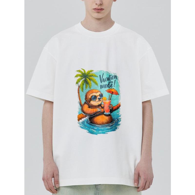Weißes T-Shirt Urlaubsmodus Faultier mit Cocktail- und Palmen-Print Sommer Freizeitkleidung