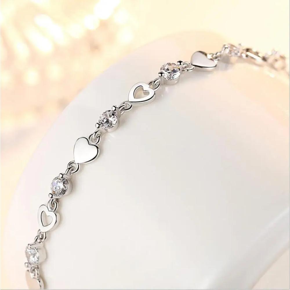 925 Silber Herzarmband Für Frauen Mode Zirkonia Kristall Schmuck Liebe Pulseira Feminina S-B144