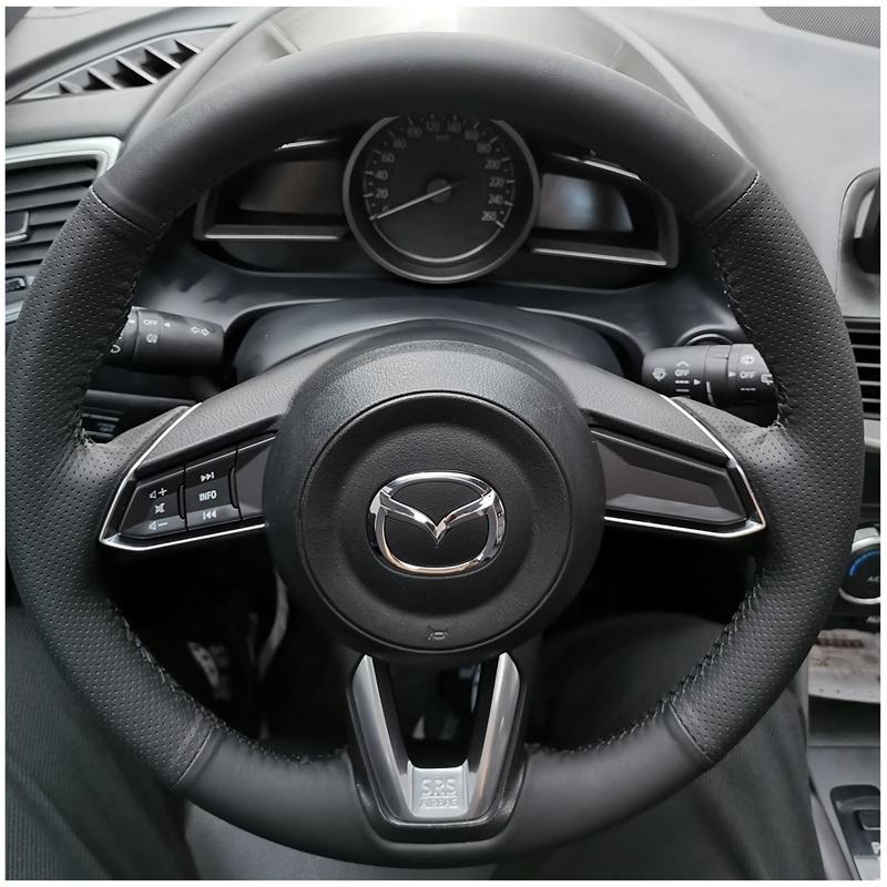 Handgenähtes Lenkradbezug Schwarz Mikrofaserleder Für Mazda CX-3 CX3 CX-5 CX5 2017 2018 Autozubehör