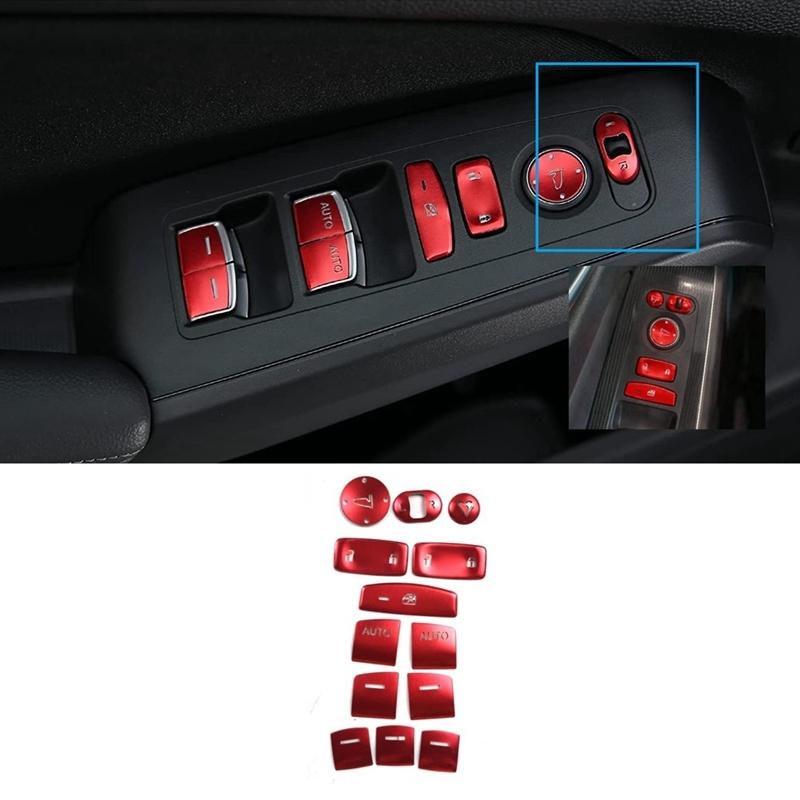 13 Stück Rote Fensterheber-Schalterknopf-Abdeckung Aufkleber für Honda Civic 11. Generation