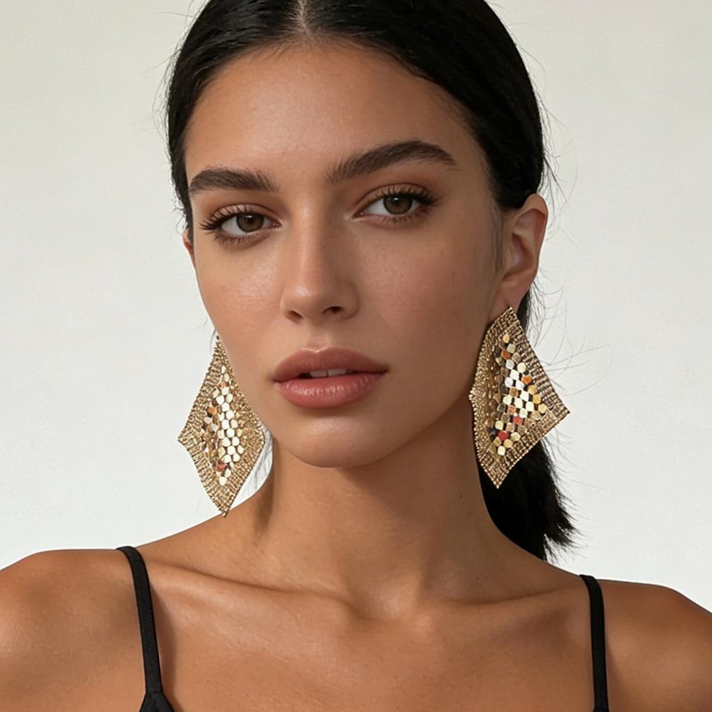 Einfache Leichte Luxus Kalte INS Stil Metall Pailletten Quaste Gitter Rauten Ohrringe Vielseitig Premium Gefühl Damen