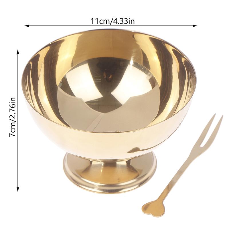1Set Gold Stainless Steel Ice Cream Bowl With Fork - Salad Dessert Fruit Plate Snack Dish Wine Cup Home Kitchen Bar Tableware
