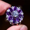 2026 Diamond Flower Ring Women's European and American Petal shaped Ring Inlaid with Amethyst Zircon Ring