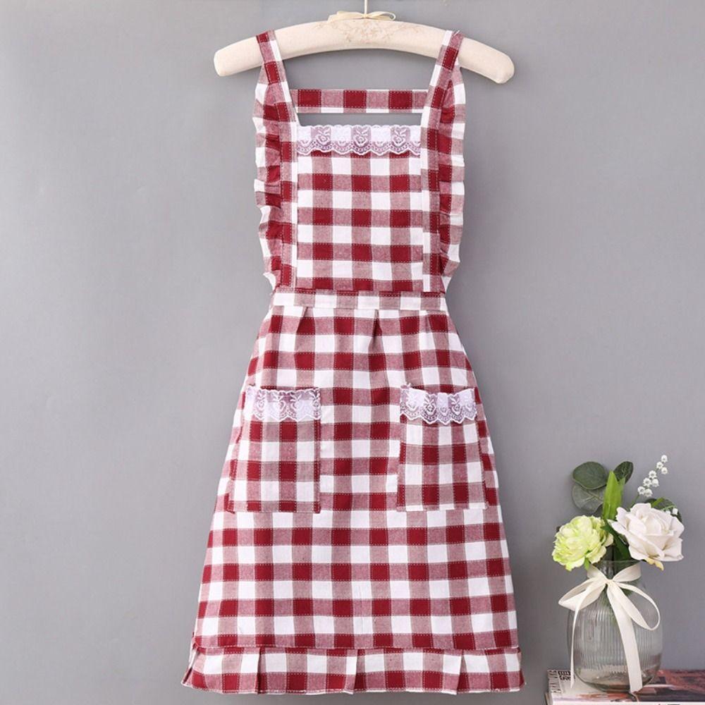 Mit Taschenrüschen Schürzen Baumwoll Prinzessin Schürzen Arbeitskleidung Karomuster Schürzen Küche