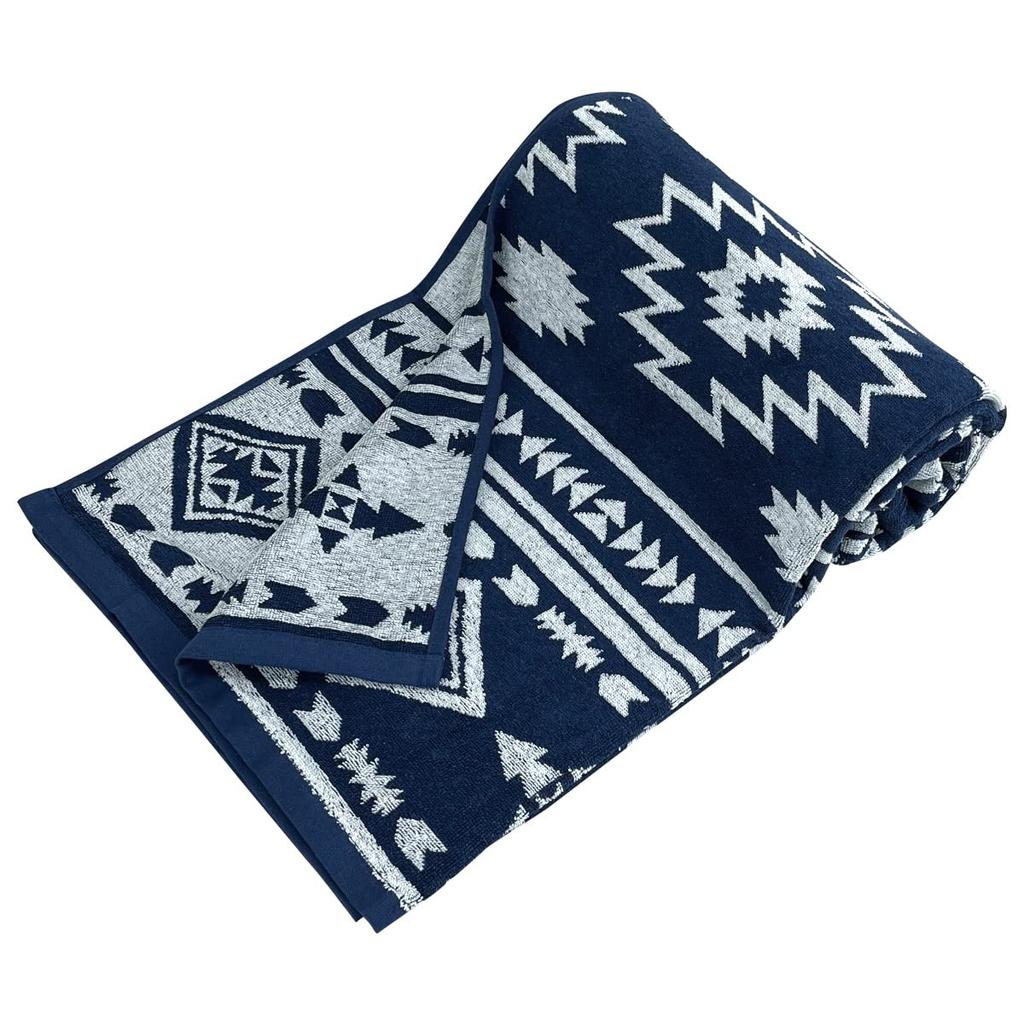 Rivere Halbdoppel-Handtuchdecke, 100% Ägyptische Baumwolle, Ortega-Muster, Jacquard-Webart, Sommer-Sofaüberwurf (Marine)