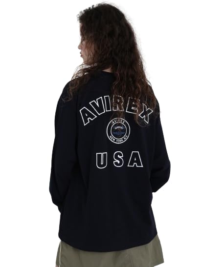 Avirex Damen Langarm Varsity Logo T-Shirt, Größe F 120, Marineblau, 783-4930601